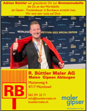 Adrian Büttler - wir gratulieren Dir zur Bronzemedaille die Du an den WorldSkills als Gipser - Trockenbauer in Bordeaux erreicht hast. Wir sind stolz auf Dich.